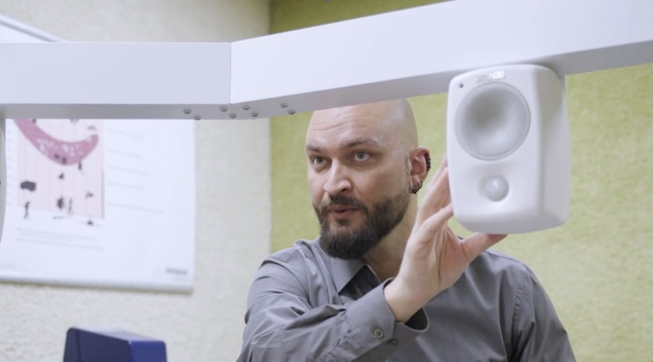 Loudspeakers arranged in various configurations around the listener to accurately simulate noise and speech from realistic directions.